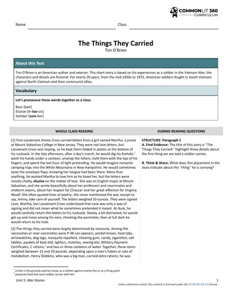 WIS - Read Online short answer study guide questions the things they carried Doc Internet Archive